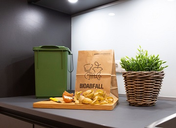 Sie können Ihre Obst- und Gemüsereste lose in einem Gefäß oder einer Papiertüte auf der Arbeitsplatte sammeln. Wer es komfortabler mag, sammelt seinen Bioabfall in einem verschließbaren Vorsortiergefäß aus dem Handel. So hält man schlechte Gerüche aus seiner Küche fern. Bevor man die Abfälle in ein Vorsortiergefäß gibt, sollte man sie in Zeitungspapier, Küchenkrepp oder Papierbeutel einwickeln, um Feuchtigkeit zu binden. Verdorbene verpackte Lebensmittel müssen unbedingt ausgepackt werden, bevor man sie als Bioabfall entsorgt.